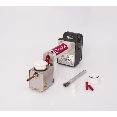 Le sublimateur d’acide oxalique sans fil Oxalika Pro fonctionne avec une batterie lithium-ion de 18 volts (ATTENTION : la batterie n’est pas incluse).Équipé d’un contrôle de la température, disponible avec des adaptateurs pour l’utilisation de batteries de 18 volts de différentes marques.